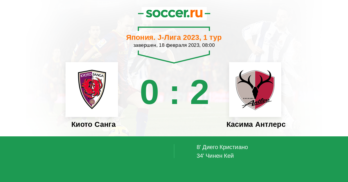 Япония. J-Лига 1 18.06.2022 Касима Антлерс Логотип футбольный клуб Касима Антлерс 1:0 Логотип футбольный клуб Киото Санга Киото Санга