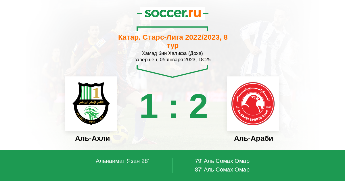 Катар. Старс Лига 24.02.2006 Аль-Араби Логотип футбольный клуб Аль-Араби (Доха) 1:4 Логотип футбольный клуб Аль-Ахли (Доха) Аль-Ахли
