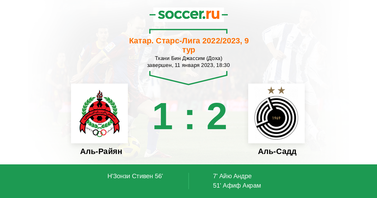 Катар. Старс Лига 19.02.2013 Аль-Садд Логотип футбольный клуб Аль-Садд (Доха) 1:4 Логотип футбольный клуб Аль-Райян Аль-Райян
