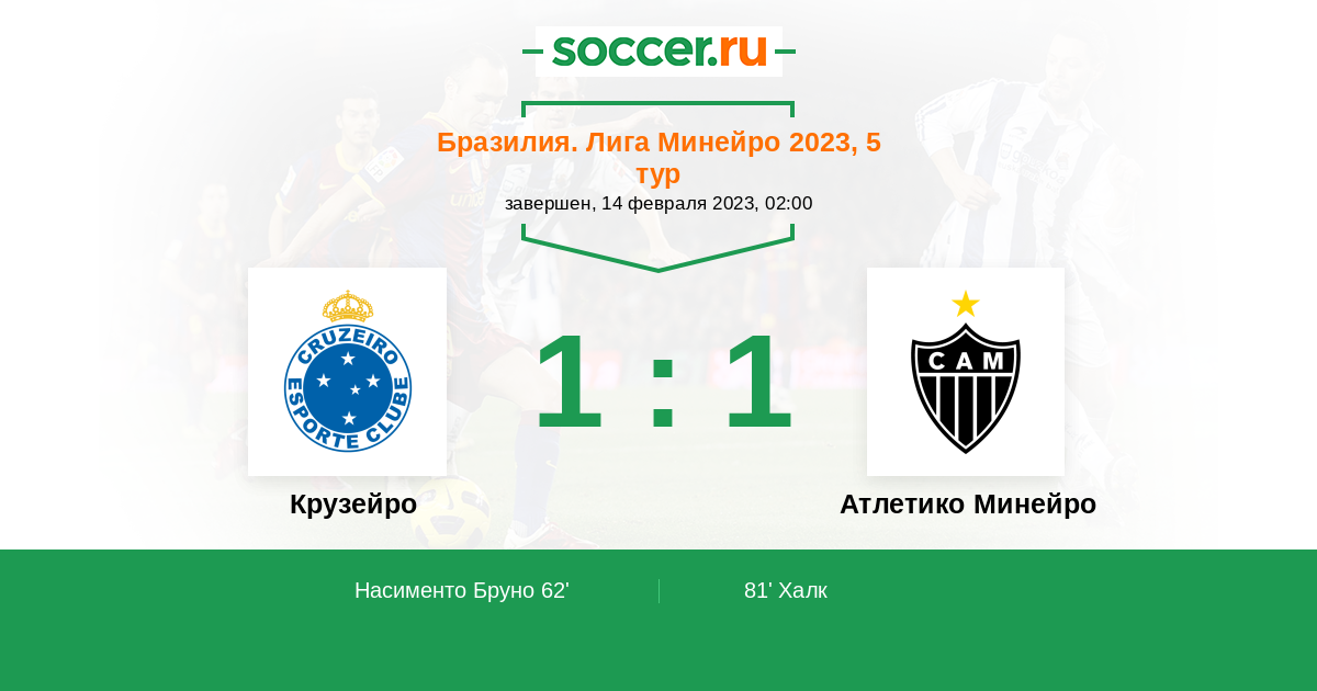 Бразилия. Лига Минейро 27.01.2019 Крузейро Логотип футбольный клуб Крузейро (Белу-Оризонти) 1:1 Логотип футбольный клуб Атлетико Минейро (Белу-Оризонти) Атлетико Минейро