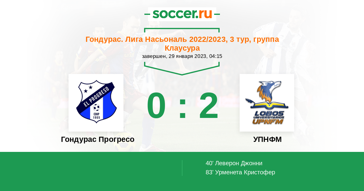 Гондурас. Лига Насьональ 23.01.2022 Гондурас Прогресо Логотип футбольный клуб Гондурас Прогресо (Эль-Прогресо) 1:2 Логотип футбольный клуб УПНФМ (Тегусигальпа) УПНФМ