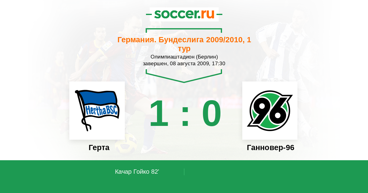 Германия. Бундеслига 11.04.2009 Ганновер-96 Логотип футбольный клуб Ганновер-96 2:0 Логотип футбольный клуб Герта (Берлин) Герта