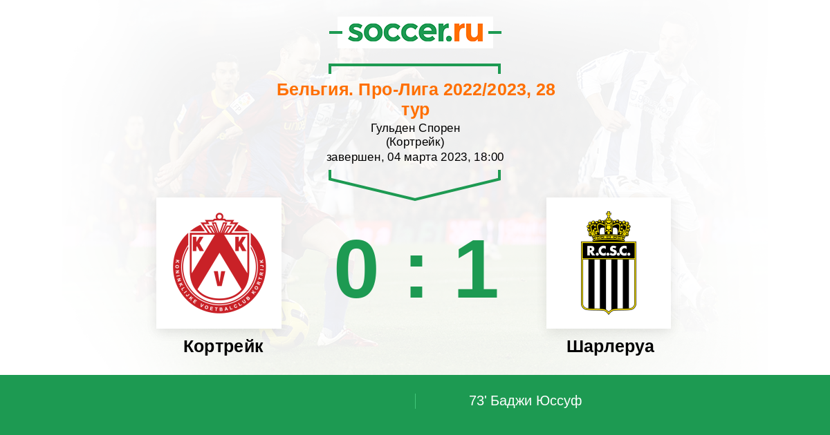 Бельгия. Про-Лига 11.03.2018 Кортрейк Логотип футбольный клуб Кортрейк 2:0 Логотип футбольный клуб Шарлеруа Шарлеруа