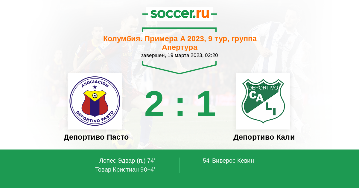 Колумбия. Примера А 30.03.2021 Депортиво Кали Логотип футбольный клуб Депортиво Кали 1:1 Логотип футбольный клуб Депортиво Пасто Депортиво Пасто