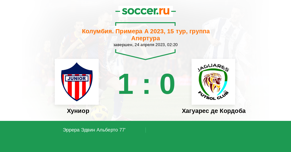 Колумбия. Примера А 26.03.2017 Хуниор Логотип футбольный клуб Хуниор (Барранкилья) 1:2 Логотип футбольный клуб Хагуарес де Кордоба (Монтерия) Хагуарес де Кордоба