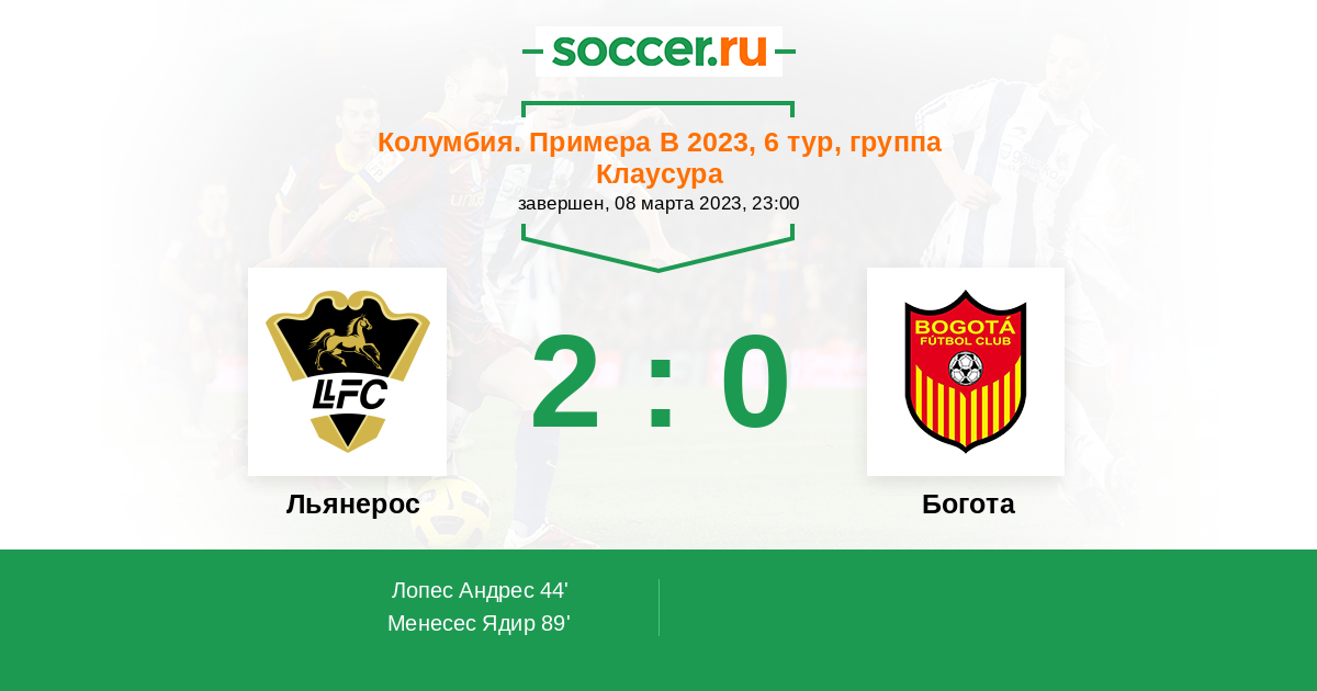 Колумбия. Примера B 03.09.2022 Льянерос Логотип футбольный клуб Льянерос (Вильявисенсио) 2:0 Логотип футбольный клуб Богота Богота