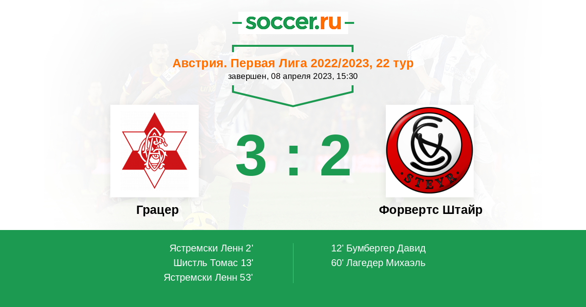 Австрия. Первая Лига 18.03.2022 Форвертс Штайр Логотип футбольный клуб Форвертс Штайр 3:2 Логотип футбольный клуб Грацер Грацер