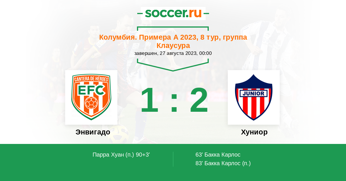 Колумбия. Примера А 27.09.2020 Энвигадо Логотип футбольный клуб Энвигадо 1:0 Логотип футбольный клуб Хуниор (Барранкилья) Хуниор