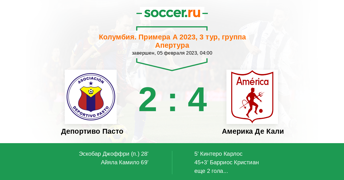 Колумбия. Примера А 23.10.2022 Америка Де Кали Логотип футбольный клуб Америка Де Кали 4:0 Логотип футбольный клуб Депортиво Пасто Депортиво Пасто