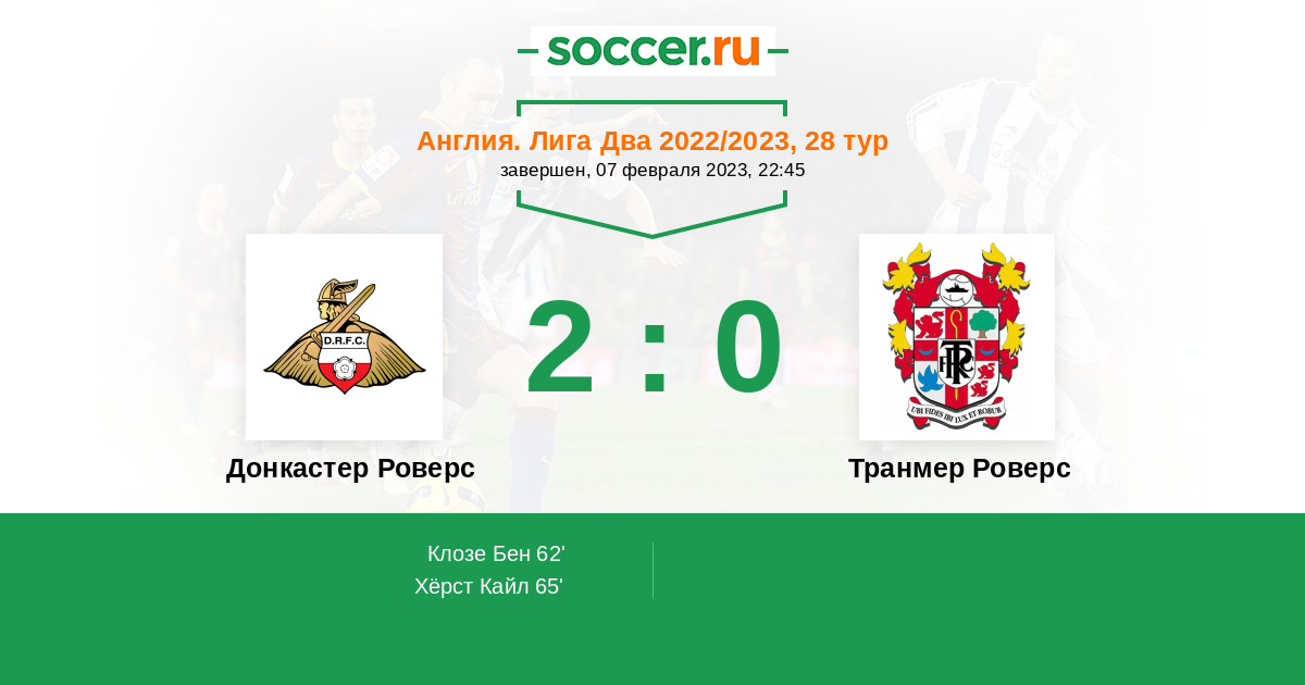 Англия. Вторая Футбольная Лига 26.12.2022 Транмер Роверс Логотип футбольный клуб Транмер Роверс 3:0 Логотип футбольный клуб Донкастер Роверс Донкастер Роверс