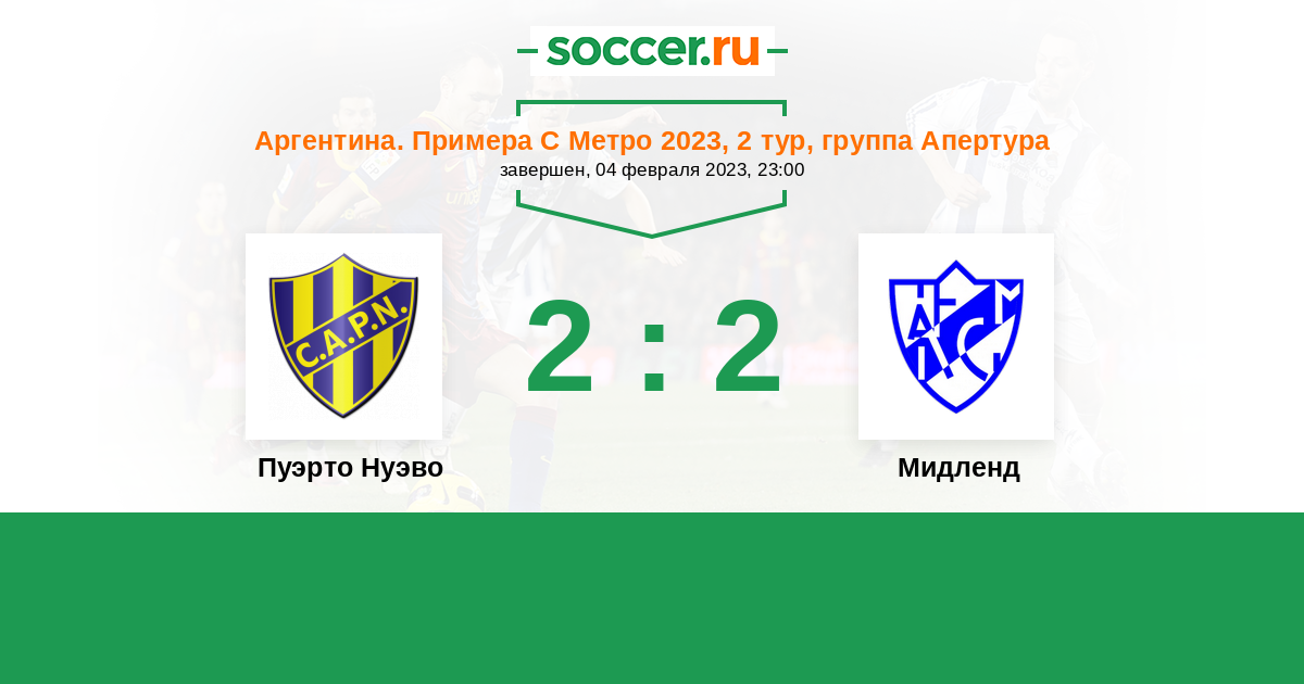 Аргентина. Примера С Метро 18.04.2022 Мидленд Логотип футбольный клуб Мидленд (Либертад) 0:0 Логотип футбольный клуб Пуэрто Нуэво Пуэрто Нуэво