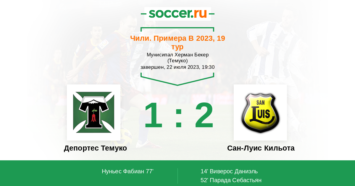 Чили. Примера В 07.03.2023 Сан-Луис Кильота Логотип футбольный клуб Сан-Луис Кильота 1:0 Логотип футбольный клуб Депортес Темуко Депортес Темуко