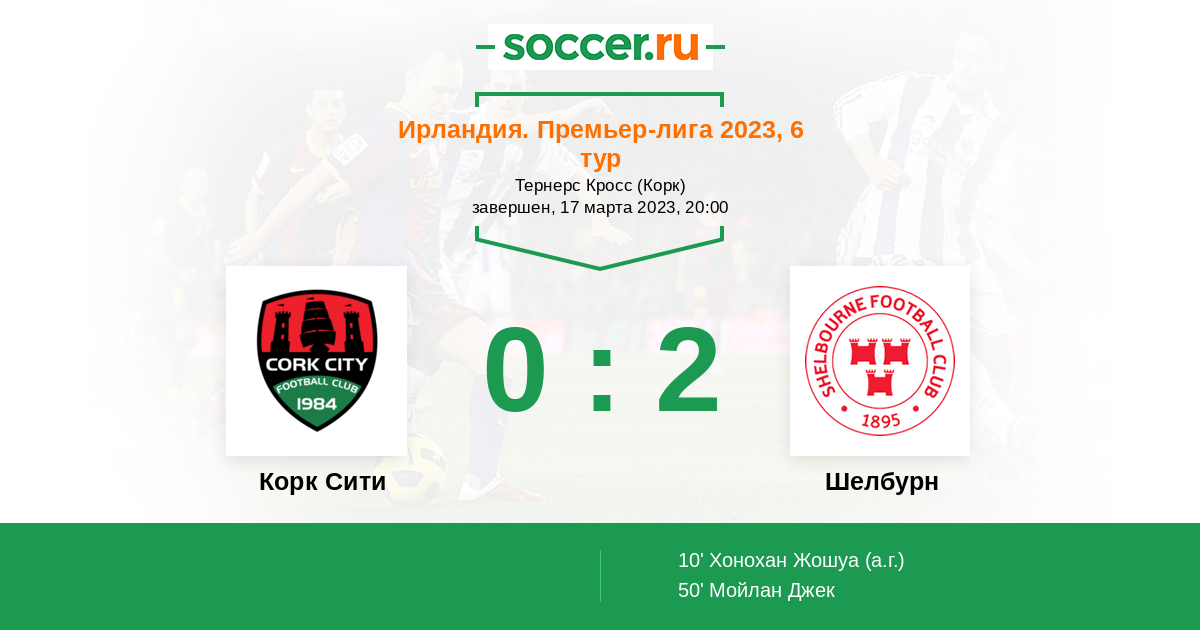 Ирландия. Премьер-лига 22.09.2023 Шелбурн Логотип футбольный клуб Шелбурн (Драмкондра) 2:1 Логотип футбольный клуб Корк Сити Корк Сити