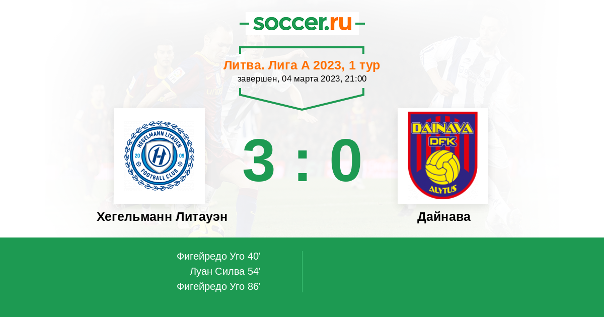 Литва. Лига А 23.04.2023 Дайнава Логотип футбольный клуб Дайнава (Алитус) 1:0 Логотип футбольный клуб Хегельманн Литауэн (Каунас) Хегельманн Литауэн
