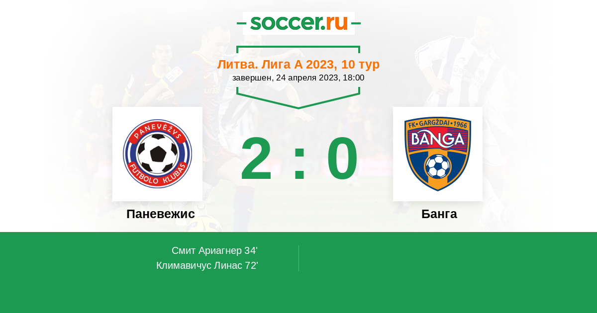 Литва. Лига А 27.08.2023 Паневежис Логотип футбольный клуб Паневежис 2:0 Логотип футбольный клуб Банга (Гаргждай) Банга