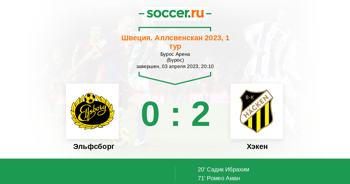 Швеция. Аллсвенскан 25.09.2019 Хэкен Логотип футбольный клуб Хэкен (Гетеборг) 1:2 Логотип футбольный клуб Эльфсборг (Бурос) Эльфсборг
