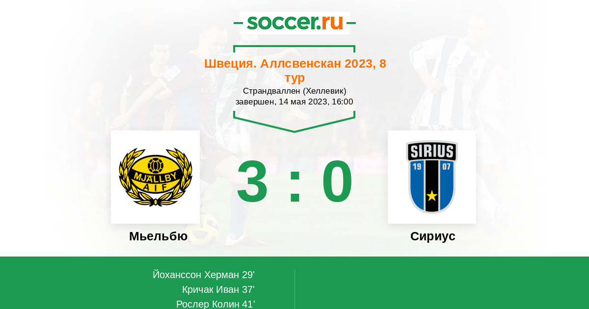 Швеция. Аллсвенскан 24.07.2023 Сириус Логотип футбольный клуб Сириус (Уппсала) 2:3 Логотип футбольный клуб Мьельбю (Сельвесборг) Мьельбю