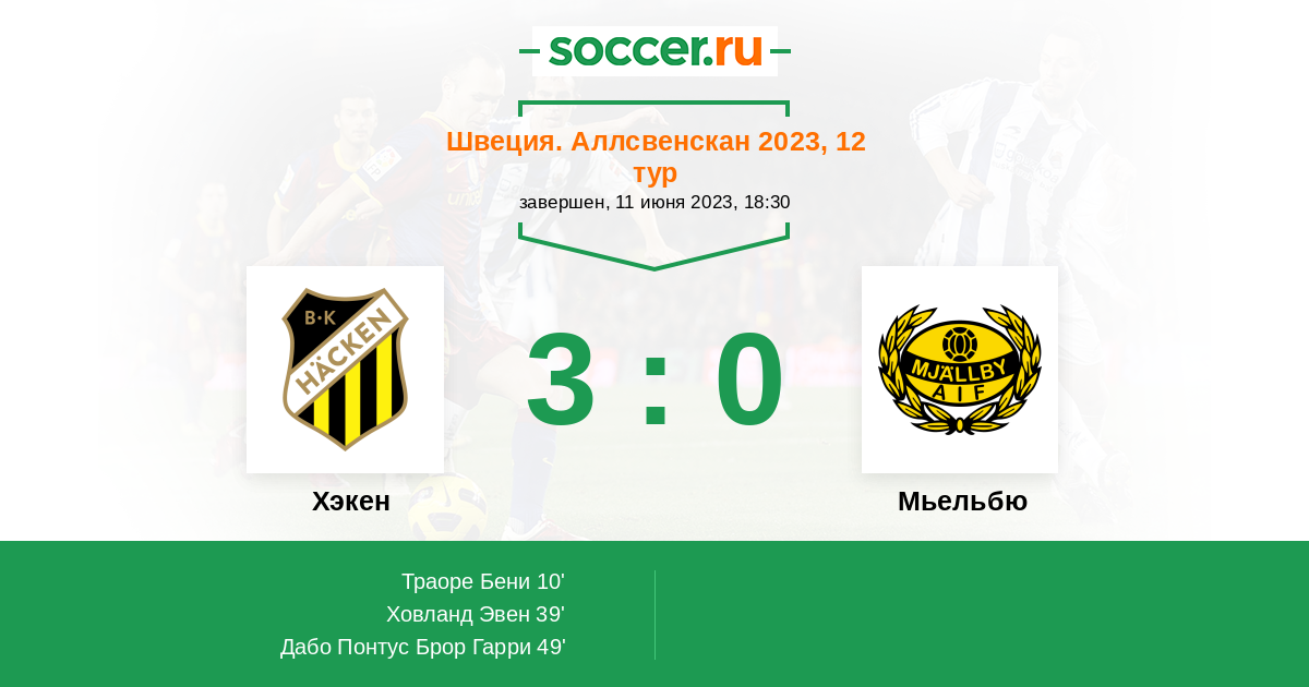 Швеция. Аллсвенскан 10.07.2022 Мьельбю Логотип футбольный клуб Мьельбю (Сельвесборг) 1:2 Логотип футбольный клуб Хэкен (Гетеборг) Хэкен