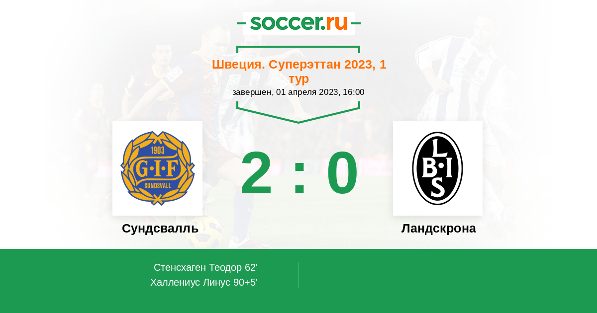 Швеция. Суперэттан 25.04.2011 Ландскрона Логотип футбольный клуб Ландскрона 1:2 Логотип футбольный клуб Сундсвалль Сундсвалль