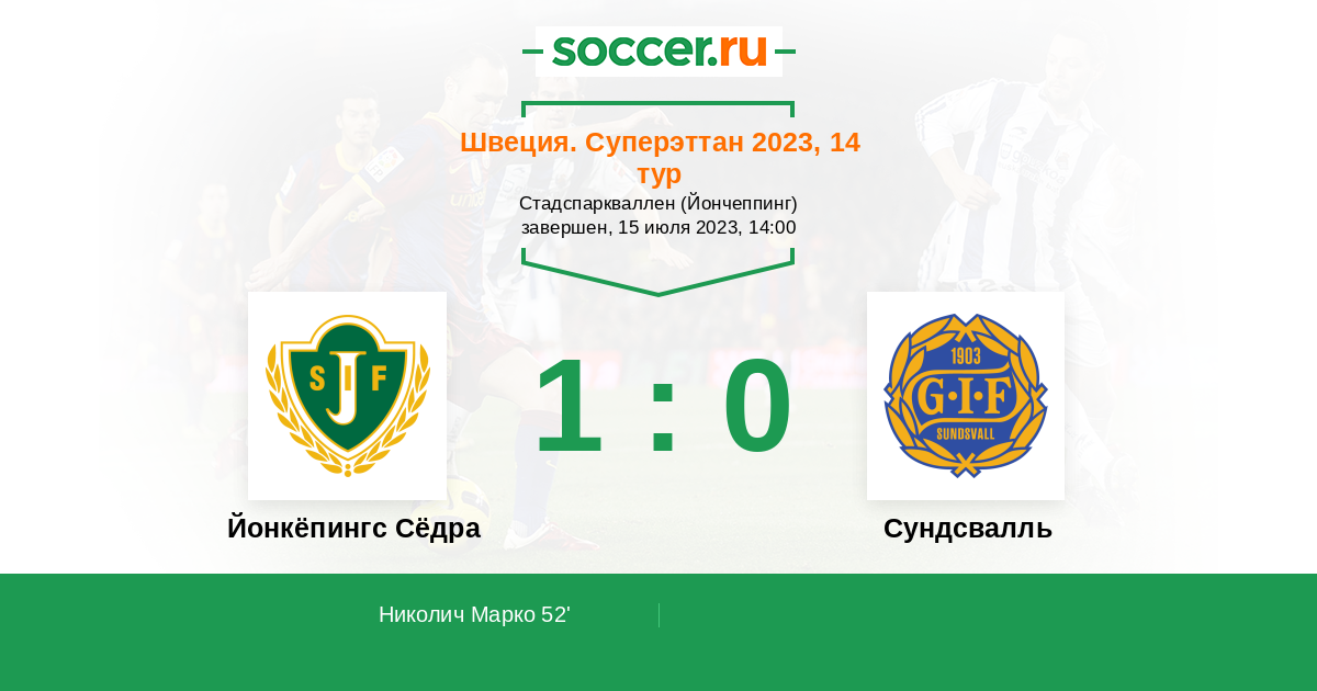 Швеция. Суперэттан 27.07.2014 Йонкёпингс Сёдра Логотип футбольный клуб Йонкёпингс Сёдра 4:1 Логотип футбольный клуб Сундсвалль Сундсвалль