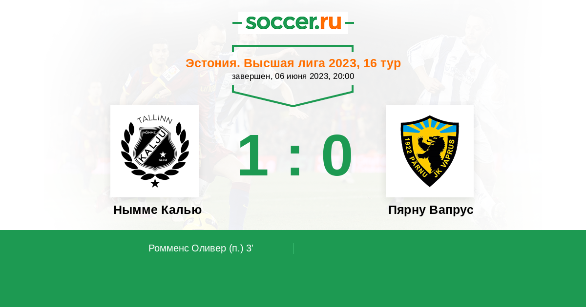 Эстония. Высшая лига 03.07.2024 Нымме Калью Логотип футбольный клуб Нымме Калью (Таллин) 4:2 Логотип футбольный клуб Пярну Вапрус Пярну Вапрус