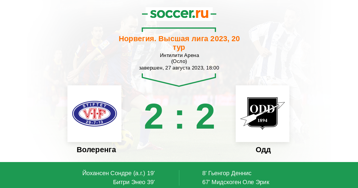 Норвегия. Высшая лига 23.07.2023 Одд Логотип футбольный клуб Одд (Шиен) 2:1 Логотип футбольный клуб Волеренга (Осло) Волеренга