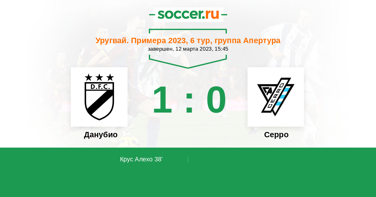 Уругвай. Примера A 19.10.2023 Серро Логотип футбольный клуб Серро (Монтевидео) 1:1 Логотип футбольный клуб Данубио (Монтевидео) Данубио