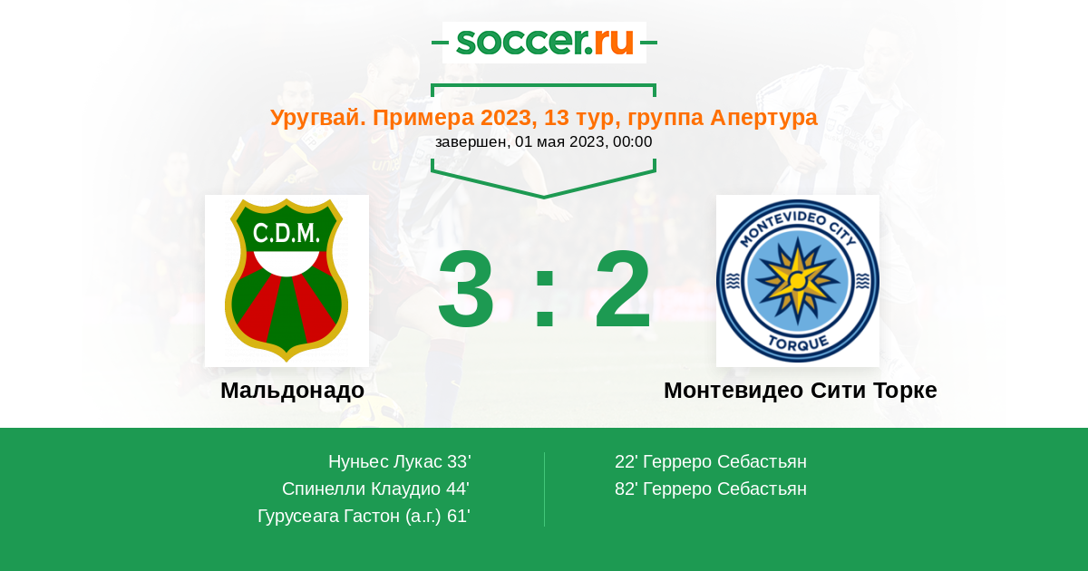 Уругвай. Примера A 04.04.2022 Мальдонадо Логотип футбольный клуб Мальдонадо 2:1 Логотип футбольный клуб Монтевидео Сити Торке Монтевидео Сити Торке