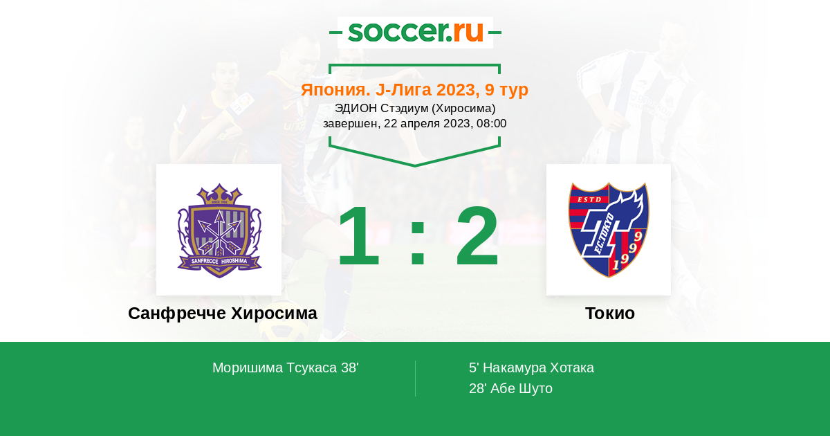 Япония. J-Лига 1 19.04.2019 Санфречче Хиросима Логотип футбольный клуб Санфречче Хиросима 0:1 Логотип футбольный клуб Токио Токио