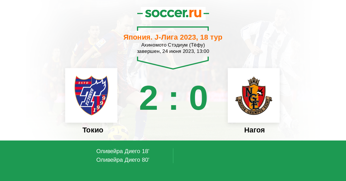 Япония. J-Лига 1 07.10.2018 Нагоя Логотип футбольный клуб Нагоя 1:2 Логотип футбольный клуб Токио Токио