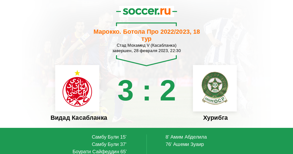 Марокко. Ботола Про 18.09.2022 Хурибга Логотип футбольный клуб Хурибга 1:2 Логотип футбольный клуб Видад Касабланка Видад Касабланка