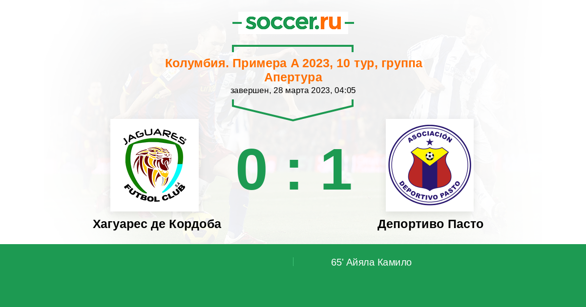 Колумбия. Примера А 21.10.2023 Хагуарес де Кордоба Логотип футбольный клуб Хагуарес де Кордоба (Монтерия) 1:0 Логотип футбольный клуб Депортиво Пасто Депортиво Пасто