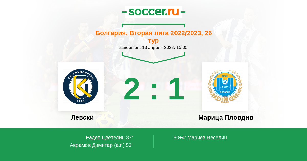 Матчи Болгария. Вторая лига 2022/2023