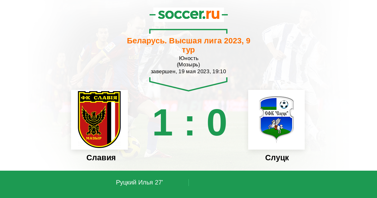 Беларусь. Первая лига 23.04.2011 Слуцк Логотип футбольный клуб Слуцк 1:2 Логотип футбольный клуб Славия (Мозырь) Славия