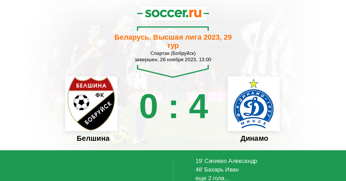 Беларусь. Высшая лига 04.05.2014 Динамо Логотип футбольный клуб Динамо (Минск) 4:1 Логотип футбольный клуб Белшина (Бобруйск) Белшина