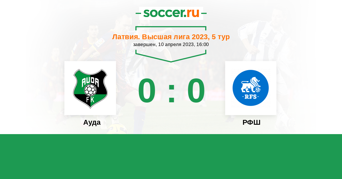 Латвия. Высшая лига 06.04.2022 РФШ Логотип футбольный клуб РФШ (Рига) 0:0 Логотип Ауда (Кекава) Ауда