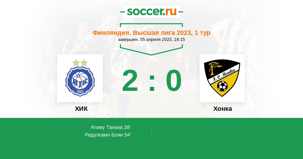 Финляндия. Высшая лига 16.06.2013 Хонка Логотип футбольный клуб Хонка (Эспоо) 1:0 Логотип футбольный клуб ХИК (Хельсинки) ХИК
