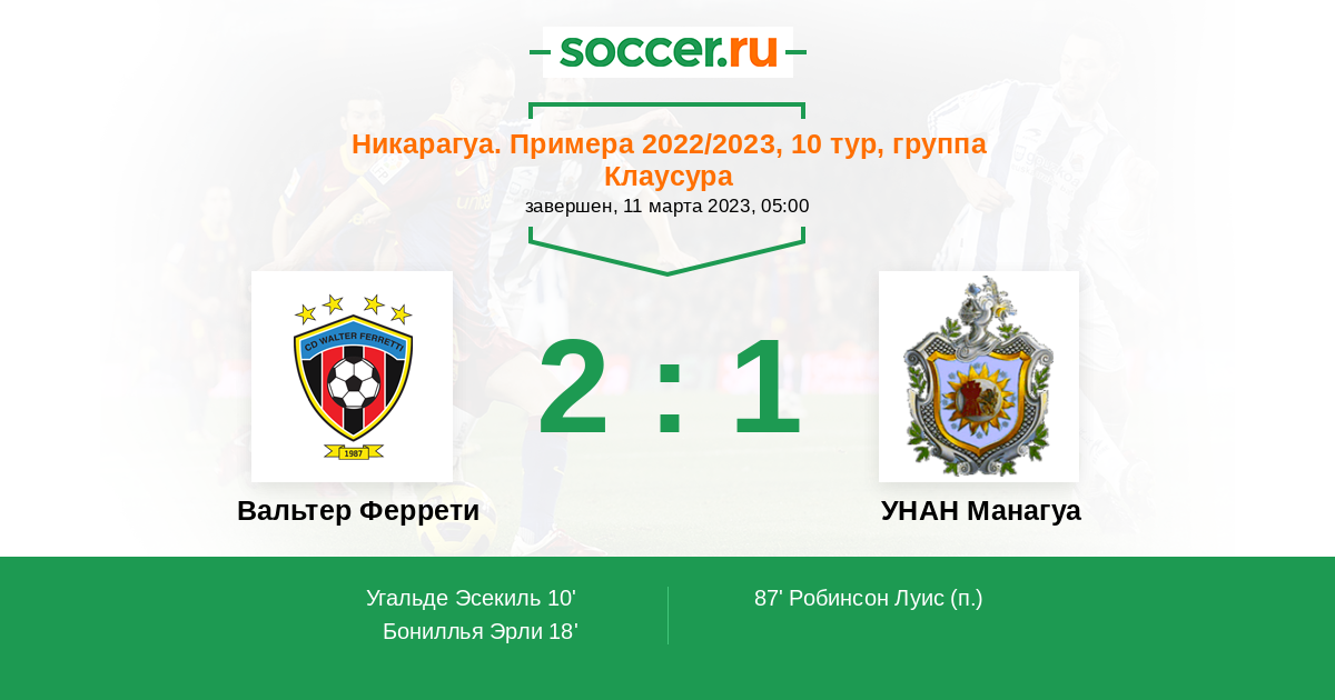 Никарагуа. Примера 23.10.2023 УНАН Манагуа Логотип футбольный клуб УНАН Манагуа 1:0 Логотип футбольный клуб Вальтер Феррети (Манагуа) Вальтер Феррети