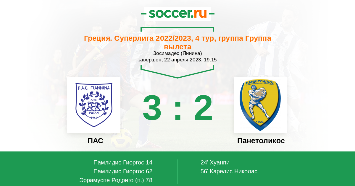 Греция. Суперлига 03.10.2022 ПАС Логотип футбольный клуб ПАС (Яннина) 1:4 Логотип футбольный клуб Панетоликос (Агринио) Панетоликос