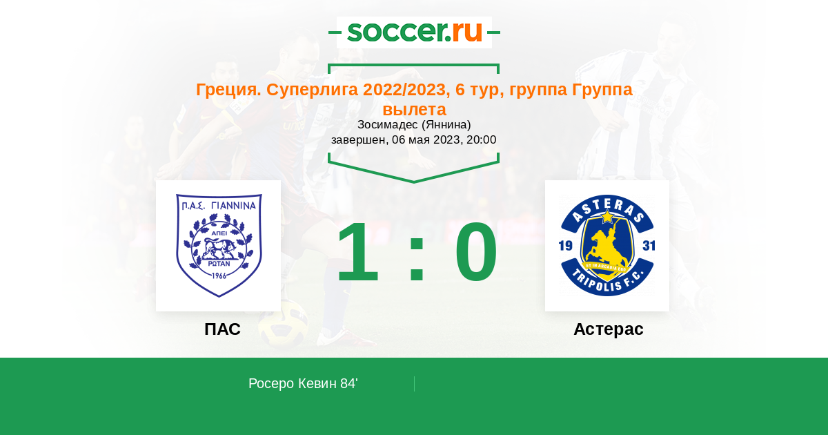 Греция. Суперлига 13.04.2024 ПАС Логотип футбольный клуб ПАС (Яннина) 0:1 Логотип футбольный клуб Астерас (Триполис) Астерас