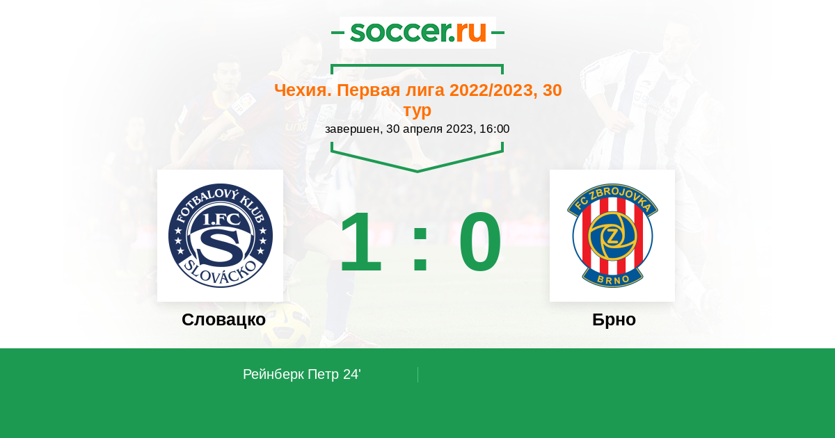 Чехия. Первая Лига 14.04.2018 Словацко Логотип футбольный клуб Словацко (Угерске-Градиште) 1:0 Логотип футбольный клуб Брно Брно
