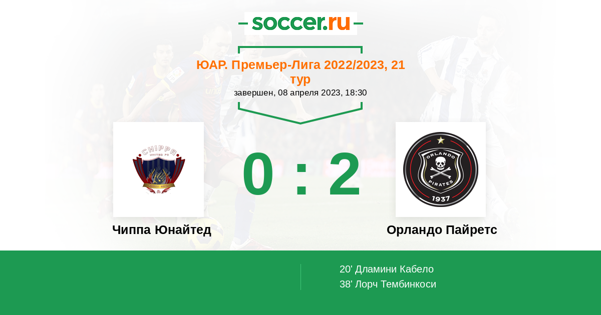 ЮАР. Премьер-Лига 27.04.2022 Орландо Пайретс Логотип футбольный клуб Орландо Пайретс (Йоханнесбург) 0:0 Логотип футбольный клуб Чиппа Юнайтед (Порт-Элизабет) Чиппа Юнайтед