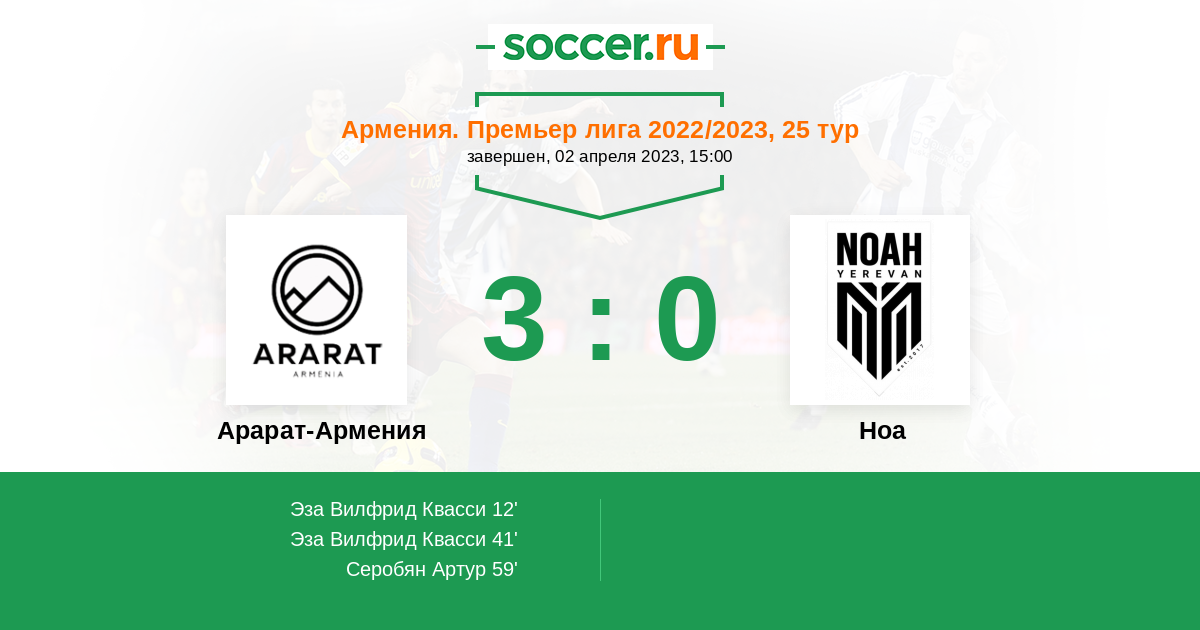 Армения. Премьер-лига 27.05.2023 Ноа Логотип футбольный клуб Ноа (Ереван) 2:1 Логотип футбольный клуб Арарат-Армения (Ереван) Арарат-Армения