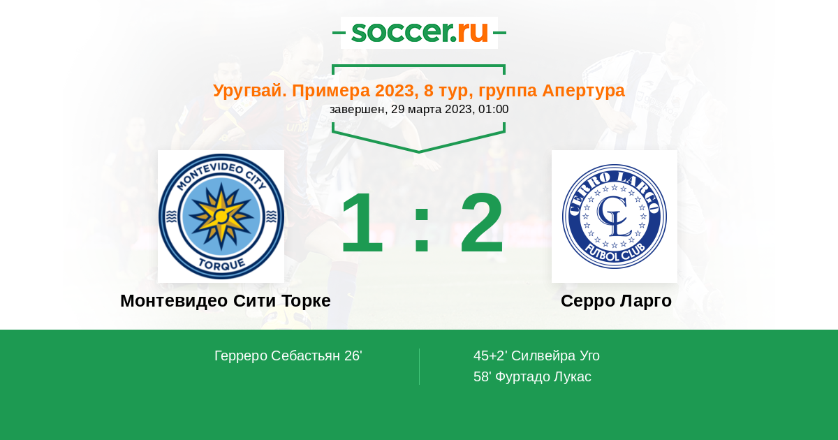 Уругвай. Примера A 04.11.2023 Серро Ларго Логотип футбольный клуб Серро Ларго (Мело) 1:2 Логотип футбольный клуб Монтевидео Сити Торке Монтевидео Сити Торке