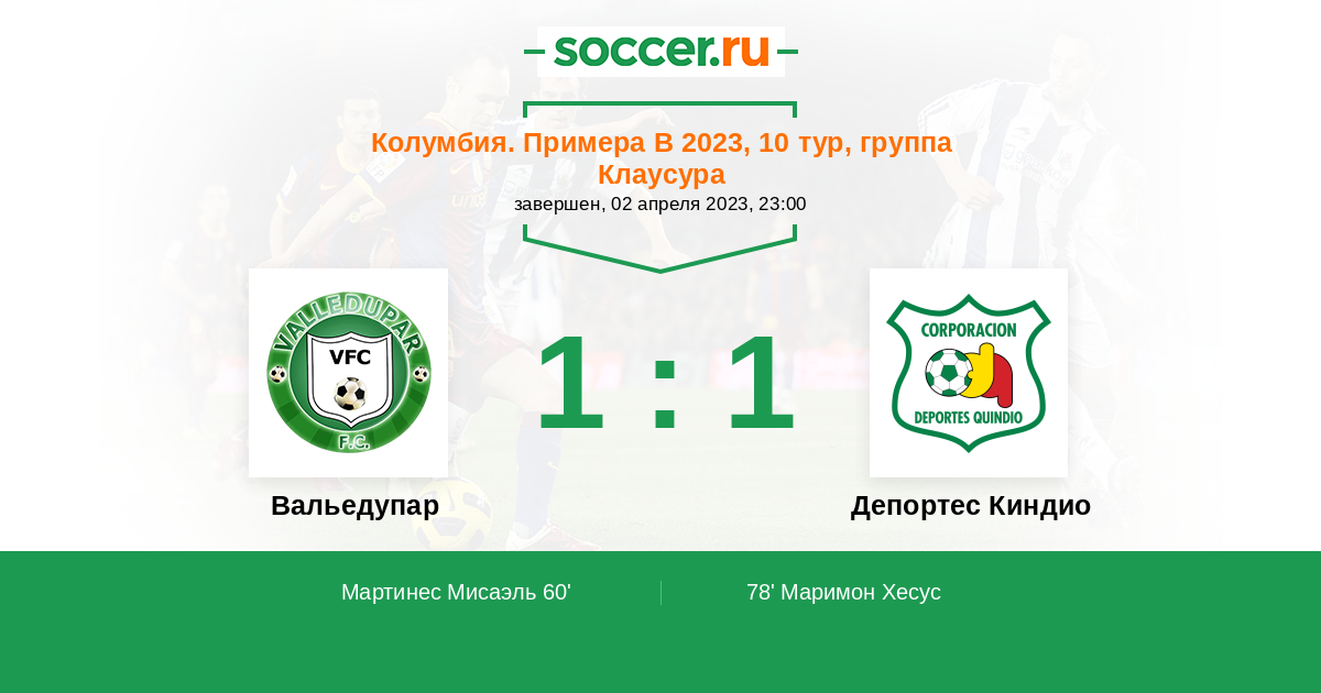 Колумбия. Примера B 27.04.2021 Депортес Киндио Логотип футбольный клуб Депортес Киндио (Армения) 2:1 Логотип футбольный клуб Вальедупар Вальедупар