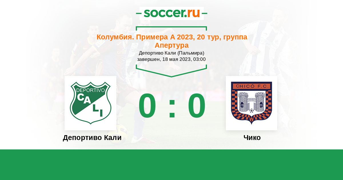 Колумбия. Примера А 03.02.2021 Чико Логотип футбольный клуб Чико (Тунха) 0:1 Логотип футбольный клуб Депортиво Кали Депортиво Кали