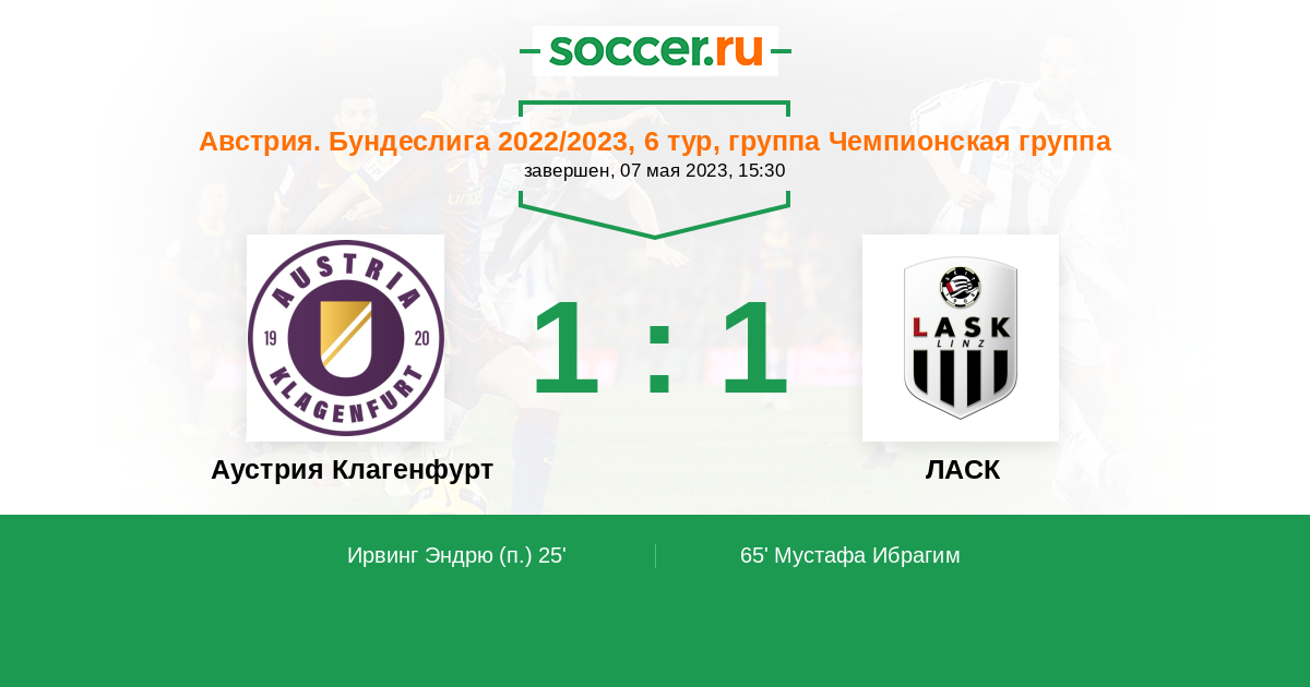 Австрия. Бундеслига 30.04.2023 ЛАСК Логотип футбольный клуб ЛАСК (Линц) 4:0 Логотип футбольный клуб Аустрия Клагенфурт Аустрия Клагенфурт