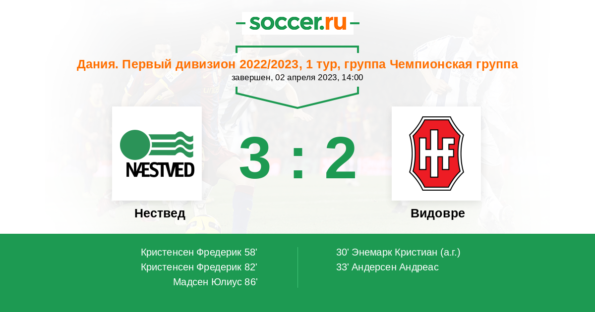 Дания. Первый дивизион 19.08.2018 Видовре Логотип футбольный клуб Видовре 2:1 Логотип футбольный клуб Нествед Нествед