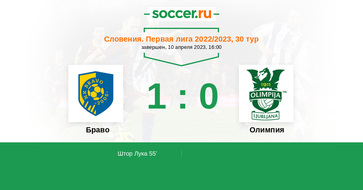 Словения. Первая Лига 01.05.2022 Олимпия Логотип футбольный клуб Олимпия (Любляна) 1:0 Логотип футбольный клуб Браво (Любляна) Браво