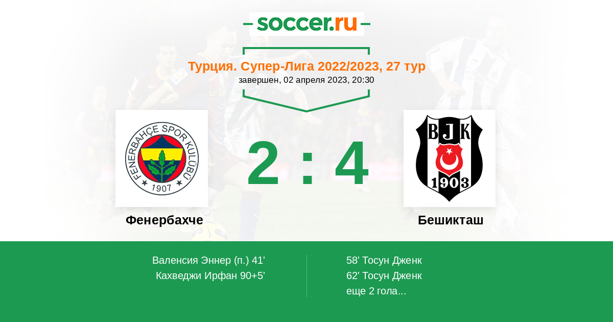 Турция. Суперлига 25.02.2018 Бешикташ Логотип футбольный клуб Бешикташ (Стамбул) 3:1 Логотип футбольный клуб Фенербахче (Стамбул) Фенербахче